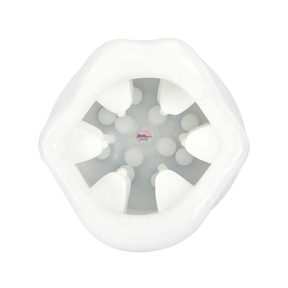 • Inner canal has tongue-like flat protrusions, simulates a teasing tongue to increase tightness, squeeze the white cup by hand (apply small amount of lube or water to your hand first)